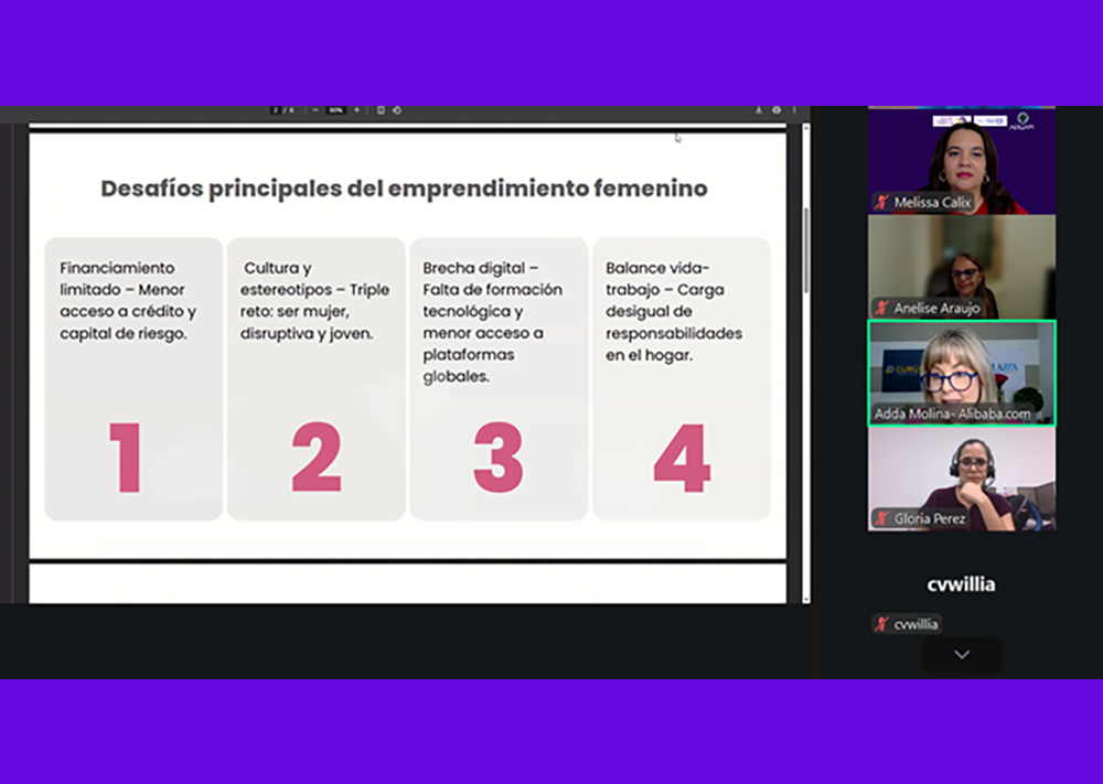 - “Principales desafíos del emprendimiento femenino y empoderamiento de la mujer”, impartida por Adda de Molina, Fundadora y Presidenta de Gurús-Plazza.com y Global Service Partner de Alibaba.com.