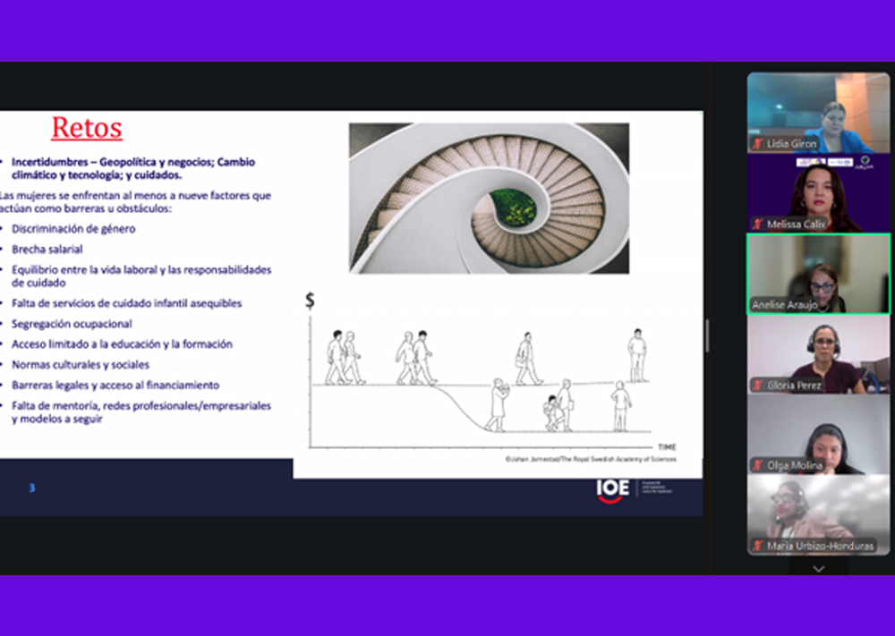 - “Mujeres en el mundo del trabajo: retos pendientes hacia una efectiva equidad”, impartida por Anelise G. de Araujo, Especialista de Género, OIT/OFICINA DE EMPLEADORES.